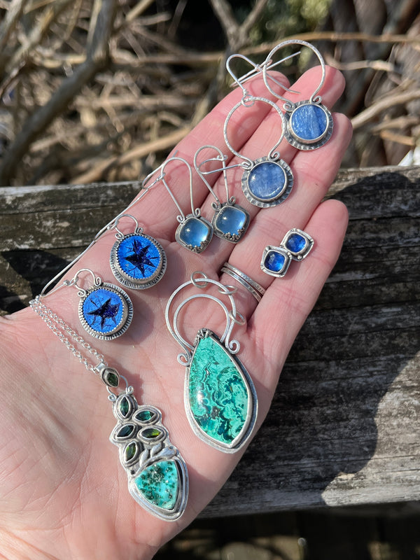 Each piece is lovingly handcrafted from precious metals and hand-selected gems into heirloom quality adornments.